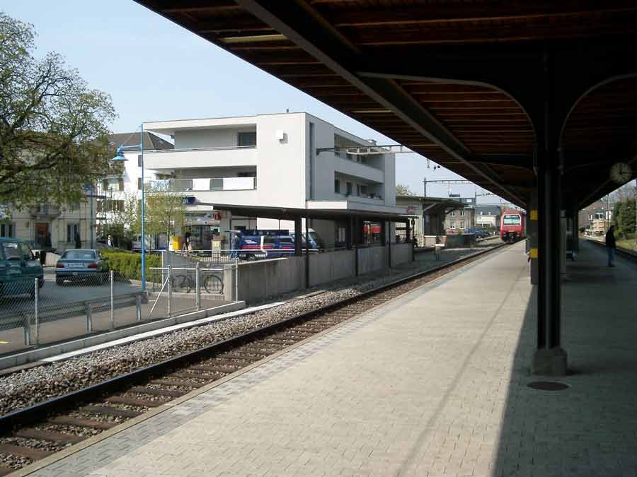 | Anzahl Geleise: | total drei Geleise, zwei Perrongeleise und ein Gütergleis sowie einem Abstellgleis mit Gewerbeanschluss | heute sind nur noch zwei Perrongeleise vorhanden |